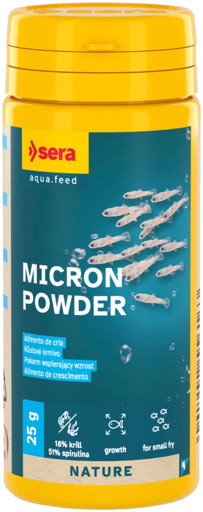 Sera Micron Powder svojím zložením a jemnou konzistenciou dokonale napodobňuje prirodzený planktón a poskytuje výživu potrebnú pre skoré štádiá vývoja.