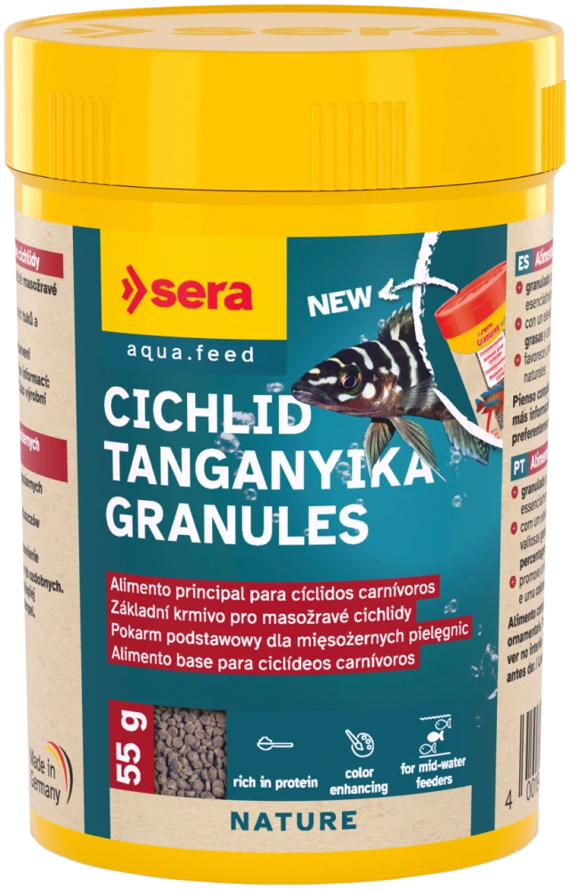 sera Cichlid Tanganyika Granules je plnohodnotné základné krmivo vo forme šetrne vyrábaných granúl, určené najmä pre malé mäsožravé cichlidy a všežravé druhy, predovšetkým z jazera Tanganyika a podobných biotopov.
