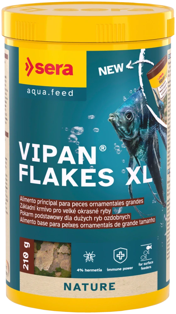 Sera Vipan Flakes a Sera Vipan Flakes XL sú kvalitné základné krmivá pre všetky okrasné ryby, ktoré sa živia pri hladine. Plávajúce vločky sú vhodné na každodenné kŕmenie a poskytujú rybám všetky dôležité živiny v optimálnom množstve.